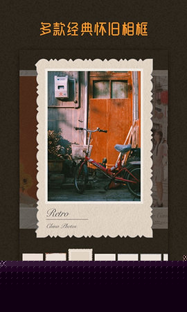 3. 内置的多种复古相框设计参考了老式照片冲印店的常见边框款式,为成品增添实体照片的展示质感,让数字影像更具收藏和分享价值。