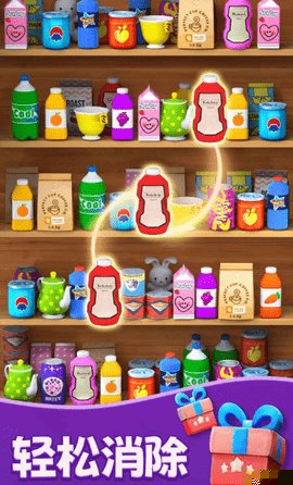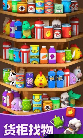 本作构建了一个充满生活气息的虚拟仓储世界。玩家将扮演一名仓库管理员,面对琳琅满目、层层堆叠的各类货柜,目标是通过巧妙的移动,将三个或更多相同的商品在横竖方向上连接起来进行消除,从而清空指定的货架区域。游戏的基础规则易于上手,但随着关卡推进,货架结构从简单的单层陈列演变为错综复杂的多层立体布局,极大地考验玩家的空间想象力和多步规划能力。商品种类繁多,从果蔬生鲜到日用百货,每种都拥有鲜明独特的图标设计,确保在密集的货架中也能被快速识别。数百个精心设计的关卡构成了丰富的主线旅程,每一关都像是一个独立的物流谜题,等待着玩家去梳理和解决。