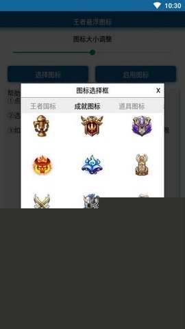 第一步:图标选择与生成。确保软件已在后台运行并已授予必要的悬浮窗权限。进入王者荣耀游戏后,通过通知栏快捷方式或悬浮小球唤出软件主菜单。在分类清晰的图标库中浏览,找到你想要的图标(荣耀王者段位标或瑶妹的专属表情),点击该图标,在弹出页面确认最终样式,点击生成并悬浮按钮。