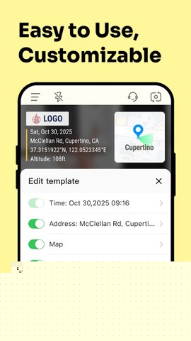 自定义水印元素编辑:用户可以在任意模板基础上进行深度DIY,自由调整水印中每一项内容(如日期格式、坐标显示方式)的字体、大小、颜色、阴影、旋转角度以及整体透明度,并支持通过拖拽将水印元素放置在画面的任何位置,实现完全个性化的版面设计。