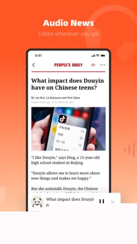 PeoplesDaily是一款由人民日报社官方推出的权威英文新闻资讯软件,向全球英语读者精准、全面地传递中国声音不仅仅是一个新闻聚合工具,更是深度理解当代中国的重要窗口,依托报社强大的采编网络和深厚的政策解读能力,每日提供涵盖政治、经济、科技、文化、社会及国际关系等多领域的原创英文报道。其核心使命在于打破语言与文化壁垒,通过专业的地道英文写作和多媒体叙事,将中国的政策动向、发展成就以及社会风貌清晰呈现给世界,为国际社会观察中国、理解中国提供了一个可信、可靠且内容丰富的数字平台,满足了海外华人、留学生、研究者、外交人士及所有对中国感兴趣的国际读者获取第一手中国信息的需求。