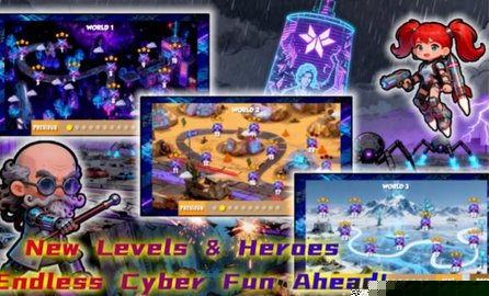 英雄的战场调度与技能连携:赛博英雄是战场上可自由移动的强力单位。他们的普通攻击可以补足火力,而冷却时间较长的主动技能则能扭转战局。玩家需要手动操控英雄移动至关键位置,并把握时机释放技能。更进阶的技巧在于实现英雄技能与防御塔效果的连携,先用英雄技能将敌人聚集,再用范围型防御塔进行集中歼灭。