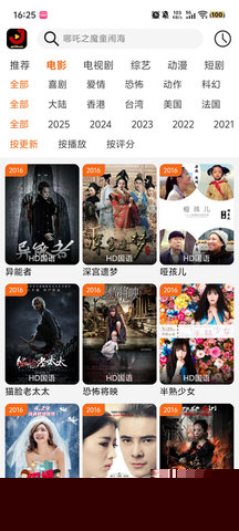 影片全局搜索与条件筛选:用户可以通过顶部的搜索框直接输入关键词查找影片,搜索功能支持结合影片类型、上映年份、评分等级等多个条件进行精细化筛选,快速定位目标内容。