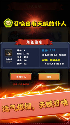 双重随机的仆从招募机制:仆从的获取并非简单的碎片收集。每次招募,其初始天赋(决定技能倾向)和资质(决定成长上限)均为随机生成。这种双重随机性保证了每次召唤都充满悬念与期待,玩家既可能获得天赋异禀的稀有角色,也可能遇到资质平平但天赋独特的潜力股,为阵容组建带来了无穷的变化。
