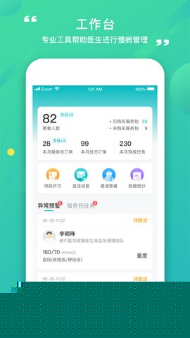 要开始使用康合上医进行患者管理,首先需完成账号注册与登录。进入主工作台后,核心操作流程如下:第一步,创建患者档案。点击添加患者按钮,通过扫描身份证或手动输入姓名、疾病诊断等基本信息建立档案,系统随后会生成一个专属绑定码或链接,可发送给患者,邀请其在自己的手机端完成绑定,建立管理关系。