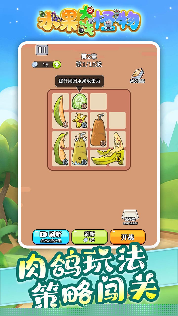 开局布局与地形利用:游戏初期,资源有限,应将最初的水果单位放置在怪物行进路径的拐点或交汇处,以最大化其输出时间。优先在关键路口合成基础单位,建立初步防线,为后续积累金币和获取更多水果种子争取空间。