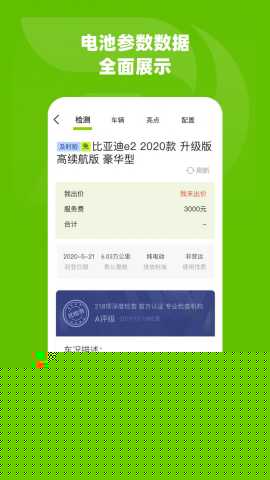 深入研究意向标的。点击感兴趣的车辆进入详情页,务必仔细查看所有图片、车辆检测报告全文以及专属的电池健康分析报告。如有疑问,可通过在线客服或页面上的咨询入口联系车源发布方。