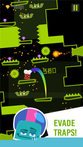 宝石收集与角色解锁:散落各处的宝石是游戏中的重要资源。持续收集宝石可以用于解锁拥有不同被动天赋的新角色。不同的天赋能力会直接影响闯关策略,磁铁天赋适合收集向挑战,而缓降天赋则有助于通过复杂地形。