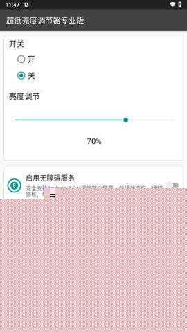 1. 极限亮度突破能力:软件最显著的亮点是其能够将屏幕亮度调节至远低于操作系统允许的最低值,实现1%甚至更低的等效亮度,这在原生系统中是无法实现的,为黑暗环境提供了真正的无光级视觉舒适度。