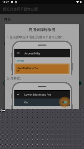 首次使用与基础调节:从官方应用商店下载并安装软件后,直接点击图标启动。您会立即看到一个占据屏幕中央的亮度调节滑块。尝试将滑块从最右端缓缓向左拖动,观察屏幕亮度变化。您会发现,即使滑块移动到最左端,亮度仍可能低于您系统设置中的最低值。这就是软件的核心调节功能,找到您感觉舒适的暗度位置即可。