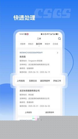 3. 沉浸式工单执行与导航集成:CSGS将工单管理深度整合了地图导航与现场作业工具。工程师接单后,应用内可直接调用主流地图服务,规划前往服务地点的最优路线,并预估抵达时间。在服务现场,工程师可使用内置的模块化记录工具,快速拍照、录制短视频、填写标准化的检测数据表单,所有信息实时同步至工单档案,极大提升了现场作业的规范性和信息记录的效率,为后续的质保追溯和服务分析提供了数据基础。