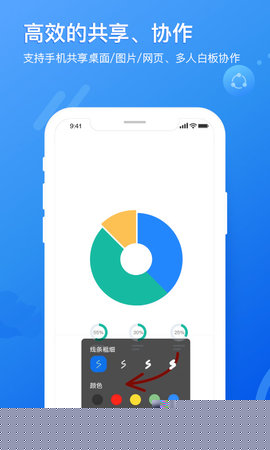 互动式白板协作:提供了一块无限延展的虚拟白板,所有参会者可以在上面书写文字、绘制图表、插入便签或上传图片,进行头脑风暴或方案研讨,创意和想法得以实时可视化呈现与碰撞。