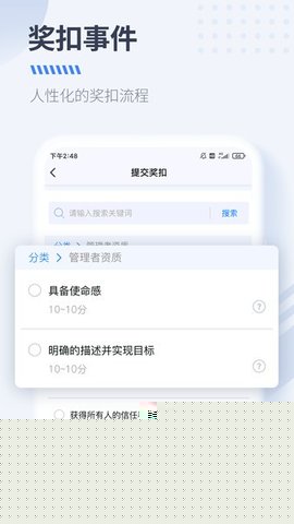 融入日常管理流程:在日常工作中,各级管理者或经授权的同事,一旦发现值得鼓励或需要纠正的行为,即可通过软件首页的快速奖扣入口,选择对应事件类型,填写具体事由、关联项目或客户,并参照规则赋予建议分值,提交后系统将自动通知相关审批人进行处理。