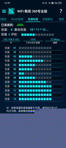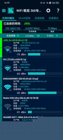 wifi概观360是一款专为安卓设备设计的专业级无线网络分析与优化工具不仅仅是一个简单的WiFi连接器,更是一个集网络探测、信号分析、信道优化和连接管理于一体的综合性平台,能够深度扫描用户周边的无线环境,以直观的图表和数据形式,清晰展示每一个WiFi热点的详细信息,包括信号强度、安全加密类型、占用信道、MAC地址乃至供应商信息,帮助用户全面掌握网络状况。无论是家庭用户希望优化路由器设置以提升网速和稳定性,还是移动办公人士需要快速寻找并连接可靠的公共网络,亦或是网络爱好者进行基础的无线环境诊断,wifi概观360都能提供强大的支持。其内置的多种实用工具和小部件,将复杂的网络技术转化为易于操作的功能,显著提升了用户在无线世界中的连接效率和使用体验。