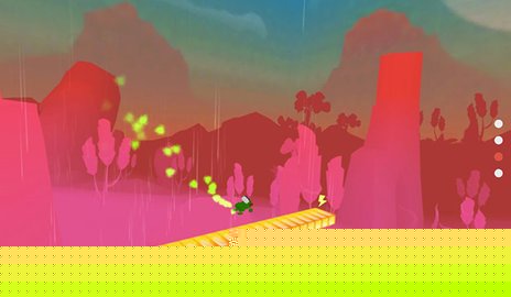 视觉表现上,游戏采用高对比度与饱和度的色块来区分场景层级、可交互物体与背景环境。这种处理方式不仅赋予了游戏充满活力的观感,更重要的是在功能性上做到了极致清晰——危险区域、可黏附点、收集物品都能被玩家瞬间识别,确保了快节奏操作下的信息传达效率,将视觉享受与玩法实用性融为一体。