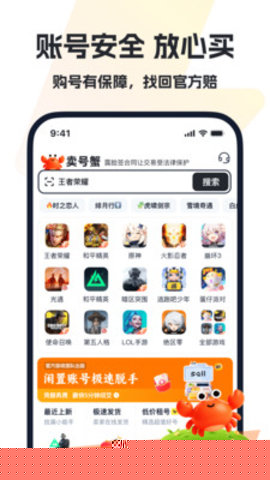 卖号蟹是一款专注于虚拟资产特别是游戏账号流转的移动端综合服务平台让数字资产的交易变得像日常购物一样便捷安全。精准地连接了拥有闲置游戏账号的出让方与渴望获得特定账号体验的接收方,构建了一个高效、可信赖的交易环境。无论是玩家投入了大量时间与心血培养的高阶账号,还是拥有稀有虚拟物品的珍藏号,都能找到合适的下一任主人,延续其价值。平台不仅关注交易的达成,更注重整个过程的保障,通过引入资金担保、标准化信息展示与官方协助机制,力求让每一次流转都清晰透明、双方安心,真正实现了让虚拟财富安全、高效地流动起来。