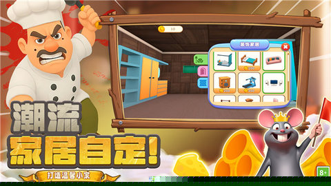 紧张刺激的追逃时刻:当恶作剧成功实施或是不慎暴露行踪时,游戏会瞬间转入紧张的追逃模式。主厨会怒气冲冲地追赶你,而玩家则需要利用对地形的熟悉,敏捷地穿梭于桌底、柜台、通风管道等复杂地形中,体验心跳加速的逃脱快感。这一环节为轻松的策略游戏注入了动作游戏的临场反应考验。
