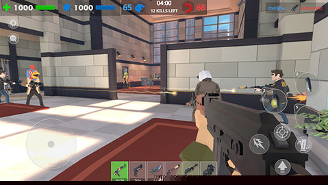 其一,是极具风格化与功能性的视觉呈现。游戏环境由纯粹的多边形和明快的色块构成,这种设计不仅形成了强烈的视觉标识消除了无关视觉元素的干扰。敌我角色的轮廓在简洁的背景中异常清晰,武器特效和弹道提示一目了然,使得战场信息读取变得极为高效,让玩家的判断完全基于战术层面,而非在复杂场景中费力搜寻目标。