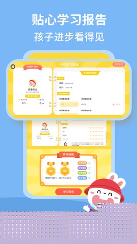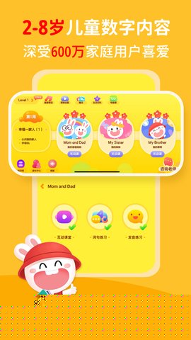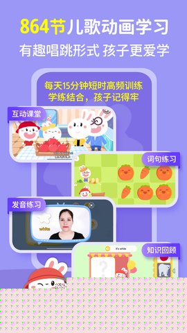 成长兔是一款专为2至8岁儿童设计的英语启蒙教育软件,通过科学系统的课程与生动有趣的互动形式,激发幼儿的语言学习兴趣,基于儿童认知发展规律构建了完整的学习路径,内容涵盖从基础字母、自然拼读到日常会话和主题词汇,的核心特色在于将语言学习与原创动画故事、韵律儿歌及情景游戏深度融合,让孩子在模仿、跟读和探索中自然习得英语,提供了完善的家长辅助工具,包括学习进度追踪、能力报告和育儿指导,使家长能够轻松参与并见证孩子的每一步成长,打造高质量的亲子共学体验。