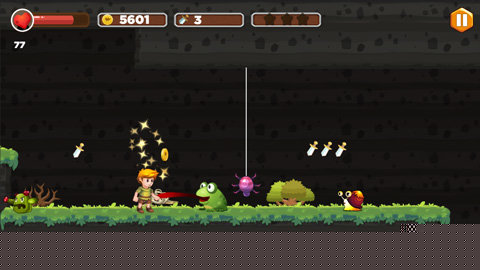 战斗环节简洁而富有策略性。面对行动缓慢的蜗牛类敌人,最有效的方式是看准时机跳跃至其头顶进行踩踏。而对于持有武器或无法踩踏的敌人,则需要保持距离,利用拾取到的宝剑进行远程攻击,或者利用环境(如引诱其掉入陷阱)来智取。不同的敌人需要不同的应对策略,盲目攻击往往会导致不必要的损失。