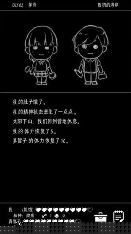 状态监控与生存维持:时刻关注界面显示的体力、精神、饥饿、健康等核心状态。通过进食、休息、使用药品或在篝火旁放松来维持。任何一项状态过低都会触发严重的负面事件,甚至直接导致游戏结束。