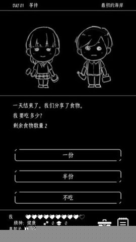 极简界面下的深度生存模拟:尽管以文字为主,但游戏模拟了完整的生存维度。体力值关乎探索距离与战斗能力,精神力影响决策的清醒度和遭遇特殊事件的倾向,而隐藏的污染度或绝望值等参数,则可能悄然将故事引向超自然或精神崩溃的暗线。资源管理需精打细算,一份食物既可用来充饥,也可能作为交易筹码或治疗同伴的良药。