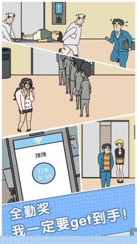 本作构建了一个既熟悉又充满戏剧性的都市早晨图景。主人公阿斌并非超级英雄,而是一个与你我一样,挣扎在闹钟与打卡机之间的普通上班族。游戏的故事线就围绕着他从家到公司的这段冒险旅程展开。每一天的关卡都是一个独立的小剧场,上演着因各种琐事和意外导致的迟到危机。开发者巧妙地将现实生活中的通勤痛点——如拥挤的交通、临出门找不到钥匙、突如其来的天气变化——进行艺术化的夸张处理,转化为需要玩家动脑解决的趣味谜题。这种设计不仅让游戏体验充满了亲切的共鸣感,更以一种轻松诙谐的方式,重新诠释了我们日常面对的压力与匆忙。