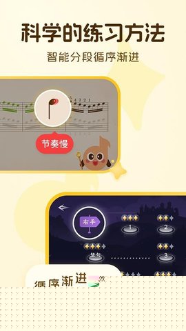 1. 专业教学内容与趣味形式的有机融合:软件内的曲库和练习体系并非随意编排,其内容设计参考了主流钢琴启蒙教材的进度,涵盖了音阶、琶音、经典练习曲片段以及丰富的儿童歌曲。孩子在享受魔法冒险的实际上正在系统性地进行专业钢琴技巧的积累,确保了娱乐性与教育性的高度统一,学习效果扎实。