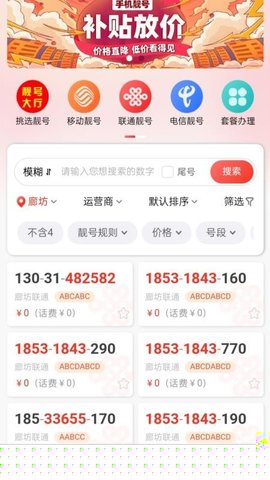 1. 跨运营商资源整合:平台的核心亮点在于实现了移动、联通、电信等多家运营商号码库的深度聚合。用户无需切换多个应用或网站,在一个界面内即可横向对比不同网络的号码资源与配套套餐,这种一站式整合极大地提升了选号效率和选择广度。