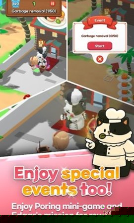 本作构建了一个既熟悉又新奇的仙境传说平行世界。游戏不再聚焦于野外战斗与城战,而是将舞台转移至炊烟袅袅的后厨。玩家扮演餐厅管理者,招募并培养那些我们熟知的魔物角色,将它们训练成各司其职的厨房高手。游戏进程以解锁不同的主题餐厅为主线,每个餐厅都对应一套独特的装饰风格和专属菜品体系,从食材到烹饪方式都会随之改变。除了应对常规顾客,游戏中还穿插着特殊事件与挑战任务,限时内完成巨额外卖订单或满足口味挑剔的美食家,这些设计有效打破了重复操作的循环,为经营过程注入了丰富的变数与戏剧张力。整个游戏世界色彩明快,角色动作憨态可掬,营造出一种忙碌而温馨的独特氛围。