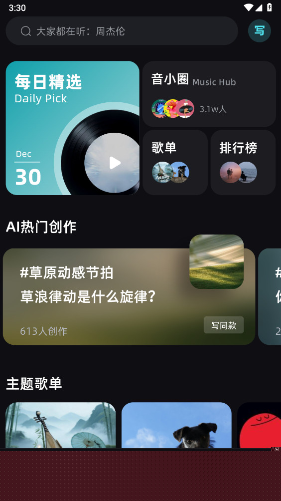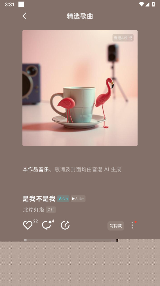 启动与灵感输入:打开音潮应用,点击首页中央的+号开始新项目。系统会提示你选择创作模式:在文字生成模式下,在输入框内描述你想要的音乐风格和情绪,忧伤的钢琴爵士乐;在哼唱生成模式下,点击录音按钮,清晰哼唱一段约15-30秒的旋律,完成后点击停止。