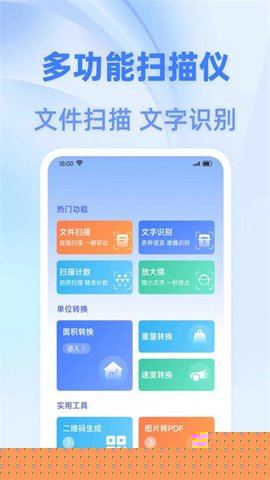 智慧扫描王是一款将智能手机摄像头转化为多功能办公利器的智能软件能够高效地将各类纸质文档、表格、名片乃至实物照片,快速转换为清晰规整的电子文件,不仅支持高精度的文字识别与提取,还能进行智能表格还原、数据计算、单位换算乃至物品自动计数等复杂任务。处理后的结果支持即时编辑、多格式导出与一键分享,无缝对接微信、邮件等社交与办公平台,极大地优化了从信息采集、整理到分发的全工作流程。无论是学生整理课堂笔记、职场人士处理合同票据,还是仓储人员进行库存盘点都能提供强大的支持,显著提升学习与工作效率,是移动办公场景中不可或缺的数字化工具。