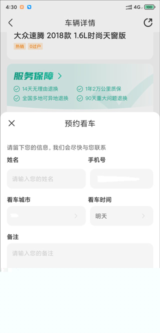 所有上架车源均要求信息完备,关键历史数据可追溯,建立了严格的信息审核机制,有效过滤虚假车源,保障了基础信息的可靠性。