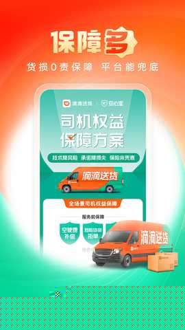 4. **全面保障,权益保护**:滴滴送货司机为每位司机和每一份货物提供全面的保障服务,确保司机在送货过程中享有各项权益,降低工作风险,提升送货体验。
