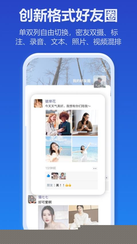 内置类似社交媒体的动态发布功能,在好友圈内分享图文、短视频等生活瞬间,并接收好友的互动反馈,将即时通讯与轻社交完美融合,满足用户展示与关注的需求。
