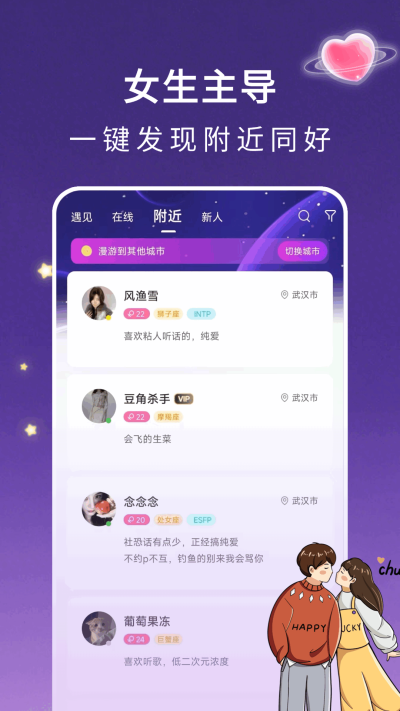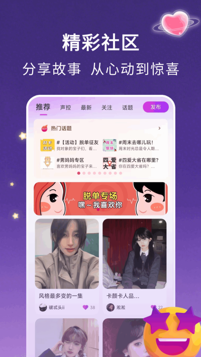 围绕MBTI探讨、情感话题、小众文化等主题建立专属话题圈层,支持动态分享与深度讨论,形成高粘性的用户社群。