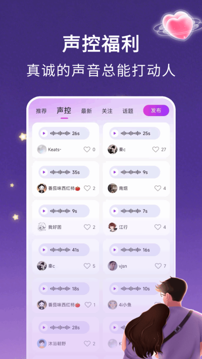 集成实时语音聊天室与一对一语音通话功能,配合声音社交场景,营造更具临场感与亲密度的沟通氛围。