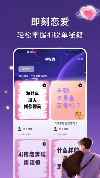 4i星球-小众恋爱交友app是一款专注于深度社交与精准匹配的移动软件,通过多维数据分析与兴趣社区构建,为追求高质量人际连接的用户提供沉浸式社交体验。其核心机制融合了心理学模型与智能算法,在去中心化的社交场景中建立真实可靠的情感纽带,让用户在安全舒适的环境中探索契合的灵魂伴侣。