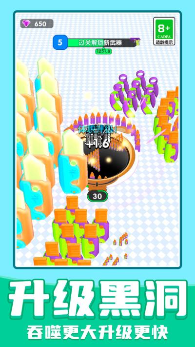 特色一:直观且富有成就感的成长体系。黑洞的每一次吞噬都会带来肉眼可见的体型膨胀,这种视觉与体感上的双重成长,赋予了玩家强烈的掌控感和发展成就感。成长不再是菜单里冰冷的数字,而是战场上实实在在的威慑力与生存资本。