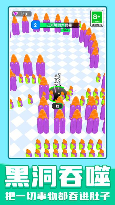 在进化黑洞构建的微观竞技场中,玩家扮演的并非传统意义上的英雄或战士,而是一个拥有无限成长潜能的奇异黑洞。游戏的舞台是一个边界清晰的封闭空间,散落着名为萝卜刀的能量结晶。这些结晶不仅是黑洞成长的唯一食粮,更是决定赛场局势的关键资源。游戏摒弃了复杂的属性系统和冗长的剧情铺垫,直截了当地将玩家投入一场关于生存、吞噬与扩张的纯粹竞赛。其视觉表现采用了高饱和度的色块与圆润的几何造型,营造出一种既活泼又带有一丝科幻感的独特氛围。黑洞本身的设计简约而富有表现力,其吞噬动作与体积膨胀的动画反馈流畅且富有力度感,让每一次成长都变得可视且令人满足。这种化繁为简的设计理念,使得游戏能够迅速抓住玩家的注意力,并引导其专注于最核心的竞技乐趣。