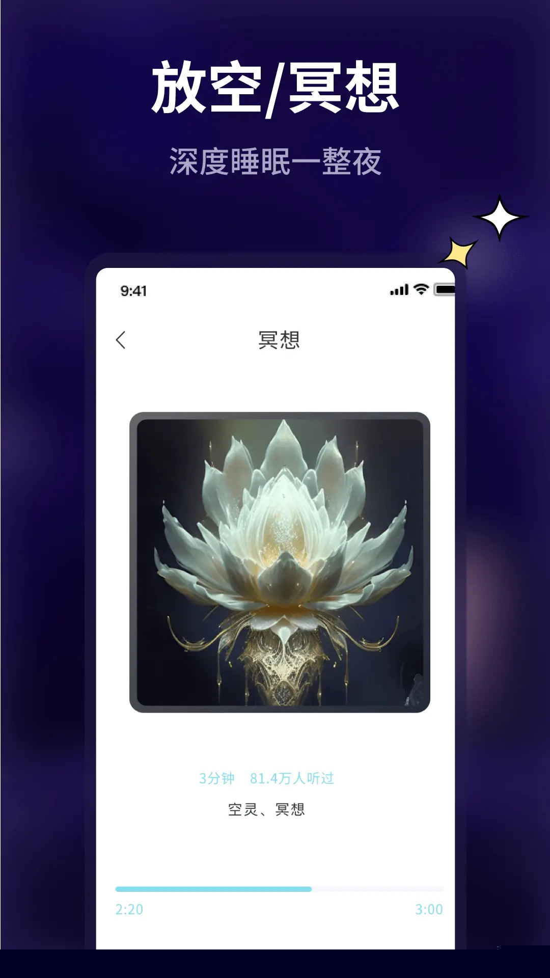 3. 沉浸式场景化助眠体验:pillow好眠突破了单一声音播放的局限,构建了丰富的沉浸式场景。星空露营场景会同步搭配篝火声、微风声和偶尔的虫鸣,并辅以视觉上的星空动画和舒缓的文字引导。这种多感官协同的设计,让用户更容易从日常思绪中抽离,全身心投入到预设的放松情境中,大大提升了助眠的效率和体验感。