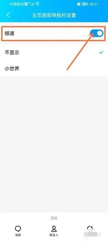 于QQ消息页面点击顶部个人头像进入设置,依次选择辅助功能与主页底部导航栏设置,开启频道选项即可在底部导航栏显示入口。