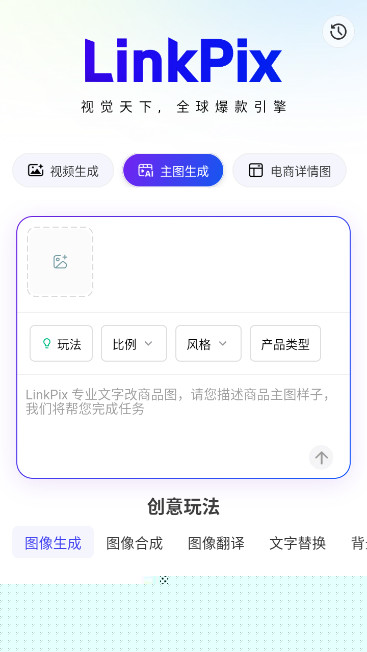 2、首页LinkPix引擎部分,将主要的视频生成、主图生成、电商详情图都做了详细分类,涵盖日常生活家居百货等多个方面,商家们可通过此项功能完成素材的添加生成自己想要的视频素材。