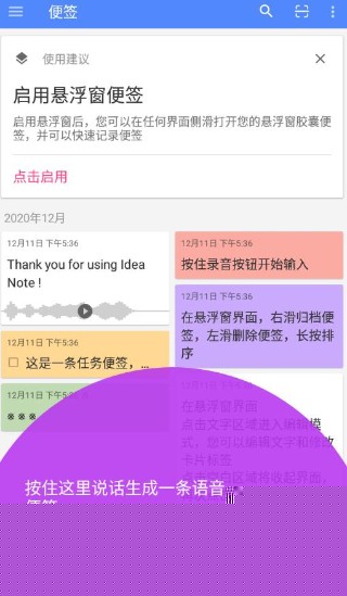 在任何应用界面均可通过侧边滑出或点击悬浮球,即刻唤出记录面板,实现零层级跳转的快速记录,确保灵感涌现的瞬间不被打断。