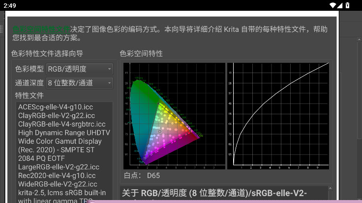 打开Krita手机版,可以看到其笔刷系统非常强大,提供了多种按照自然笔刷建模的笔刷引擎;