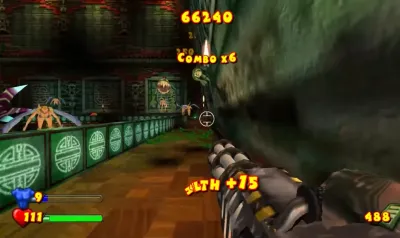 本作的故事背景设定在一个时空结构被未知力量扰乱的多维宇宙中,传奇英雄萨姆·斯通被迫踏上一段超越时空界限的征途。敌人的形态与规模远超以往,它们不再满足于单一的进攻模式,而是会利用环境、形成包围、甚至召唤更强大的个体。游戏的核心驱动力在于移动与毁灭的循环,玩家必须永不停歇地奔跑、跳跃、闪转腾挪,在高速位移中精准地倾泻火力。场景设计极具互动性,许多看似背景的物体都可能成为逆转战局的关键,引爆燃料罐制造连锁爆炸,或击碎特定结构引发塌方以阻断敌潮。单人战役流程充实,讲述了萨姆为修复破碎时空而战的完整篇章,其间穿插着令人捧腹的美式幽默与对经典文化的戏谑致敬,使得这场血腥之旅始终洋溢着独特的娱乐精神。