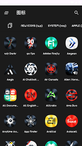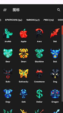 智能图标搜索与筛选功能:用户可以通过关键词快速搜索特定应用的图标,也支持按应用类别(如游戏、社交、金融等)进行筛选,极大地提升了在海量图标库中定位目标的效率。