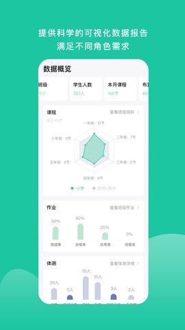 1. 动态生理指标监测:软件能够通过与可穿戴设备的联动,在体育课期间实时采集并分析学生的心率、运动密度及卡路里消耗等关键生理数据,为教师提供客观的课堂负荷依据,实现科学化训练。