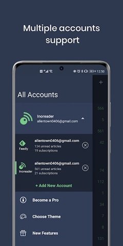 多账户与分类文件夹管理:支持管理多个订阅服务账户(如Feedly, Inoreader),并允许用户创建嵌套的文件夹和标签,对订阅源进行逻辑清晰的分类,实现信息的有序化管理。