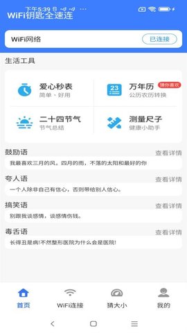 WiFi钥匙全速连是一款集无线网络发现、智能连接、网络优化及生活工具于一体的综合性移动应用软件。它主要服务于需要在移动环境中便捷获取稳定网络连接的用户,通过高效扫描周围WiFi热点,提供一键连接解决方案,极大简化了寻找和接入公共或共享网络的过程。除了核心的网络功能,软件还内置了网络诊断与速度测试工具,帮助用户实时了解网络质量并进行优化。更它创新性地整合了多个日常实用小工具与轻量级休闲娱乐内容,如单位换算、手电筒、简易游戏等,使其不仅仅是一个网络工具,更成为一个多功能的效率与娱乐平台。无论是出差旅行、临时办公,还是日常休闲,WiFi钥匙全速连都能满足用户对快速网络和便捷工具的双重需求,其简洁直观的操作逻辑确保了各年龄层用户都能轻松上手。